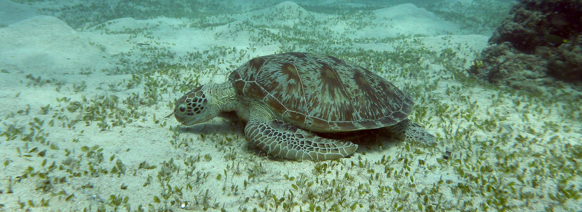 South GeorgiaGreen turtle feeding on sea grass